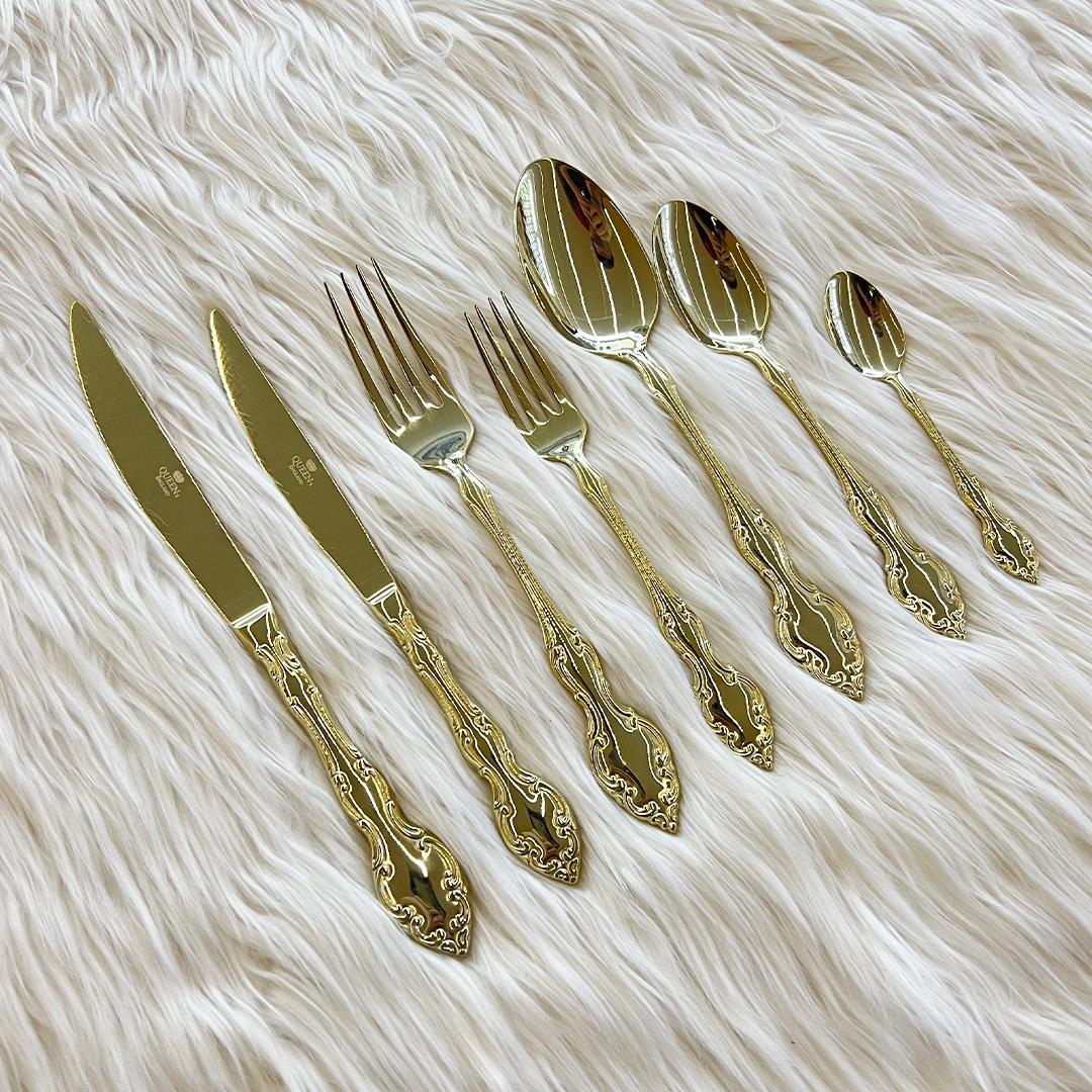 Fork Spoon Knife Set for 12Queen's of England 89 Parça Çatal Kaşık Bıçak Takımı - Parlak Gold